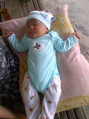 Seiring berjalannya waktu, bayi saya yang belum genap berusia dua bulan mulai menunjukkan sikap yang berubah-ubah. Ia mulai bosan jika harus tiduran terus di kasur dan berada dalam kamar. Ia mulai senang digendong dan dibawa berjalan-jalan mengitari rumah. Terlihat dari wajahnya yang tersenyum dan tidak rewel apabila saya menggendongnya dan berpindah dari kamar menuju ruang lainnya.